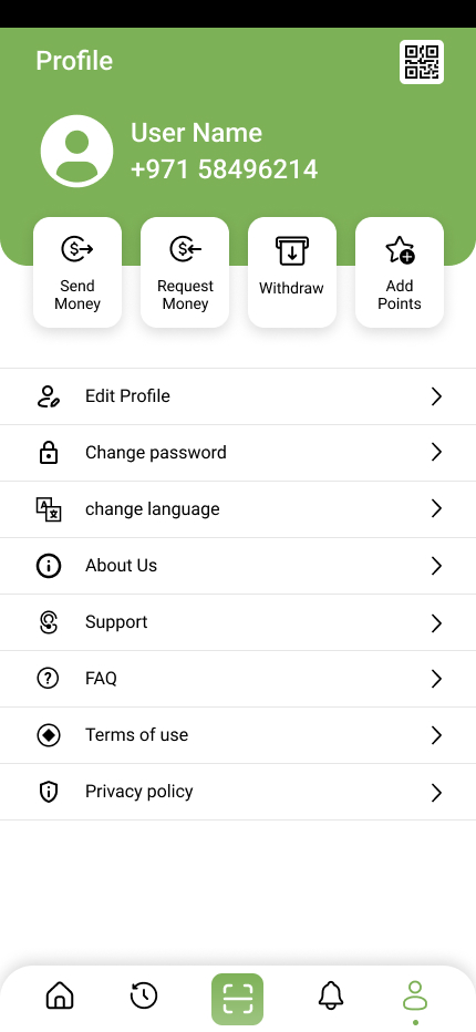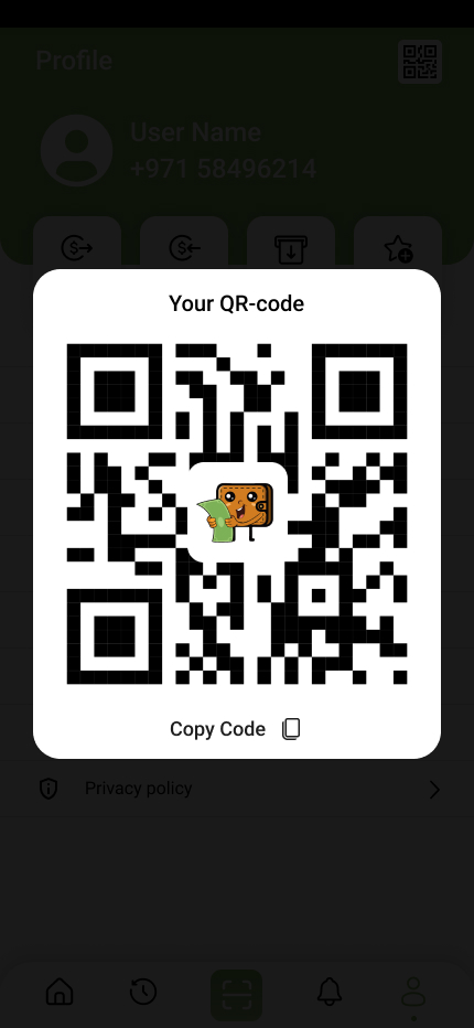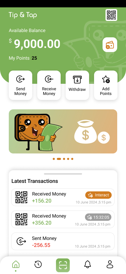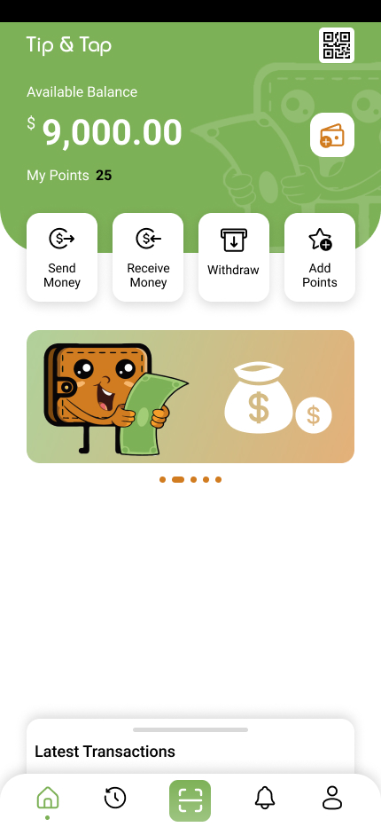 Get your authentic QR code for sharing & scan others’ QR for Tips transfers.